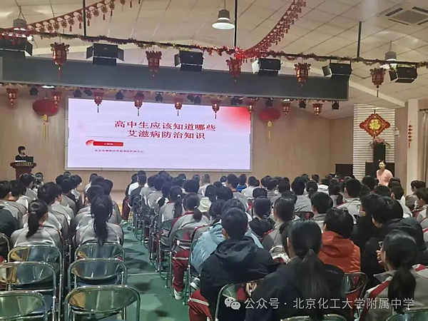 在第38个世界艾滋病日来临之际,为帮助学生打破认知误区、强化防护意识,北京市朝阳区疾病预防控制中心、北京化工大学附属中学高中部、北亚运村社区卫生服务中心,共同举办“高中生艾滋病防治专题讲座”,用科学驱散迷雾,用知识守护成长。