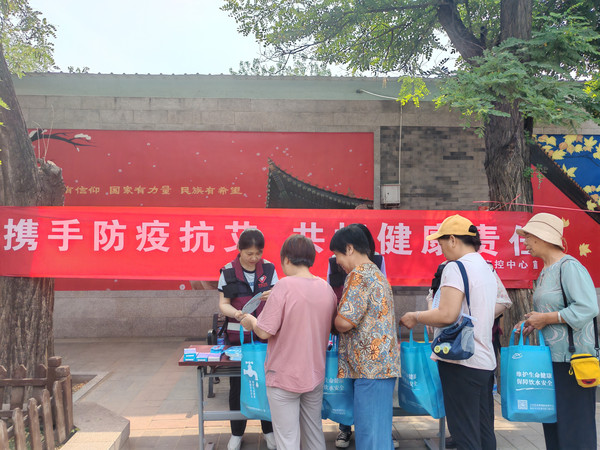 为进一步深化落实艾滋病、性病及丙肝防治知识“进社区”,全面普及疾病防控知识,2024年6月6日上午,大兴区疾控中心在黄村西里社区开展主题为“携手防疫抗艾,共担健康责任”的宣传活动。
