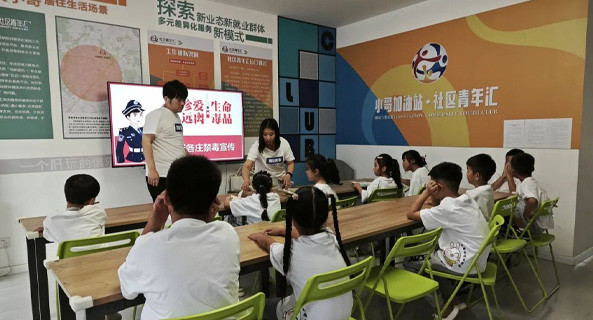 7月29日,朝阳区崔各庄乡平安建设办公室联合区团委在费家村红领巾夏令营课堂开展以“快乐暑假 无毒人生”为主题的禁毒宣传活动。