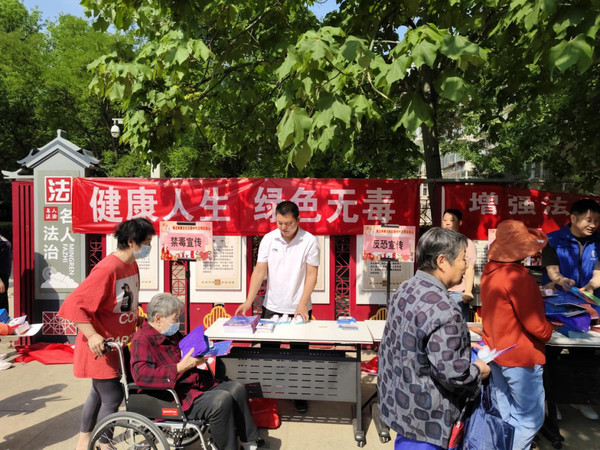 海淀街道平安建设办公室联合综合办公室、民生保障办公室、综合行政执法队等部门在海淀南路北社区法治文化广场开展集中宣传活动,禁毒工作人员通过悬挂横幅、发放禁毒宣传折页和禁毒杂志等形式,向在场群众普及常见毒品的种类和危害、禁毒法律法规等…