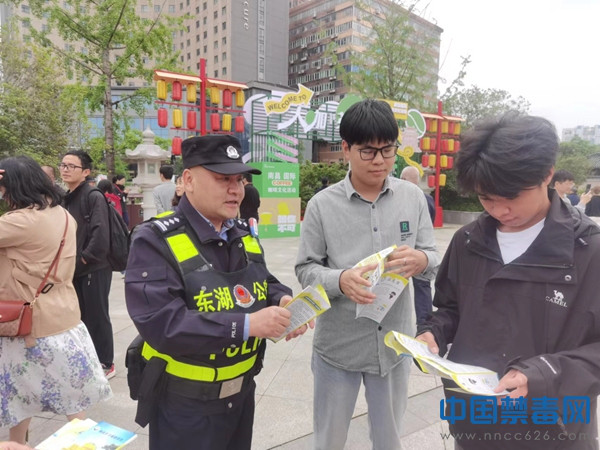 为深入推动全国禁毒示范城市创建工作,进一步筑牢景区防毒安全线,五一假期,江西省南昌市东湖公安分局缉毒大队联合滕王阁社区戒毒(康复)工作站禁毒社工抓住契机走进景区,开展禁毒宣传活动
