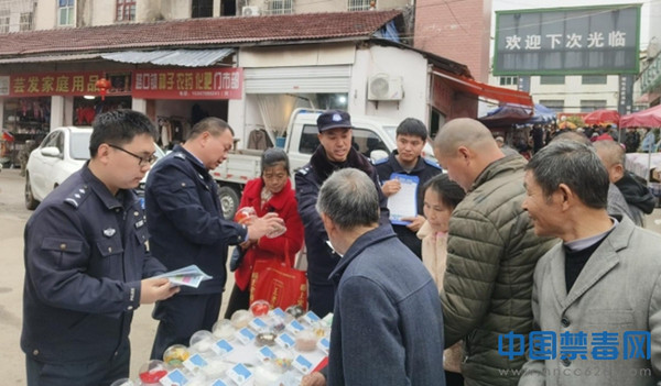 为进一步提升群众的禁毒理念和防毒意识,近日,江西省萍乡市莲花县公安局禁毒大队联合路口镇政府、路口派出所利用农村赶集时间,开展“珍爱生命 远离毒品”主题禁毒宣传活动。