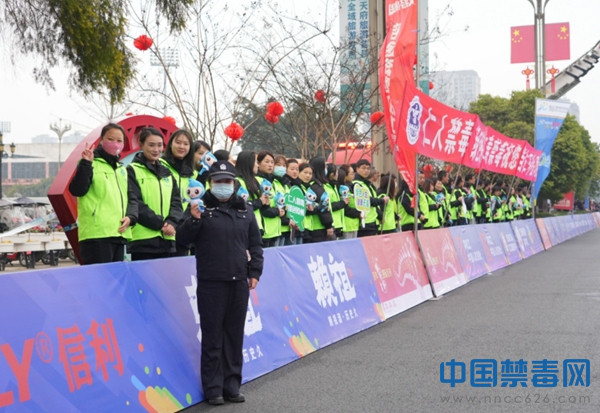 “2024信利眉山仁寿半程马拉松·跑遍四川(眉山站)”新年首马如约而至,迎来了各地的马拉松运动健将,借此契机,四川眉山仁寿县禁毒办组建了一支由公安民辅警和禁毒社工为成员的禁毒啦啦队,开展禁毒宣传活动。