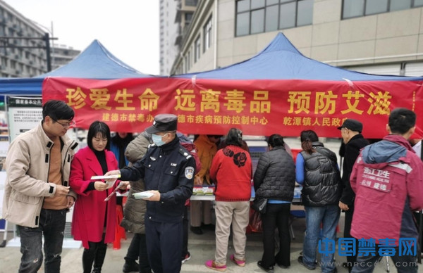 为进一步提高群众远离毒品、预防艾滋病的意识,11月30日,浙江省建德市禁毒办统一协调,联合建德市疾病预防控制中心和乾潭镇人民政府,以“三十七届万乐节”为契机,开展禁毒防艾宣传活动。