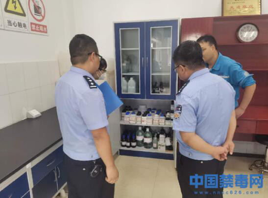 活动中,禁毒民警查阅了各企业易制毒化学品出入库登记和使用台帐记录,核实了各企业购买、运输易制毒化学品资质,并实地查看易制毒化学品存储使用情况。