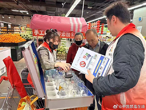 近日,山西省太原市尖草坪区禁毒社工走进超市,以“流动宣传+互动科普”的创新形式开展禁毒宣传活动。社工将毒品仿真模型巧妙放置于超市手推车中,化身“移动禁毒课堂”,向顾客讲解新型毒品的隐蔽特征。 ???