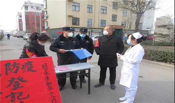 菏泽成武县公安局禁毒大队投入到疫情防控第一线,民警、辅警对城区密集区域进行巡逻,配合交警、交通部门在治安检查站、高速路口执勤,禁毒社工、志愿者到小区进行疫情防控宣传。