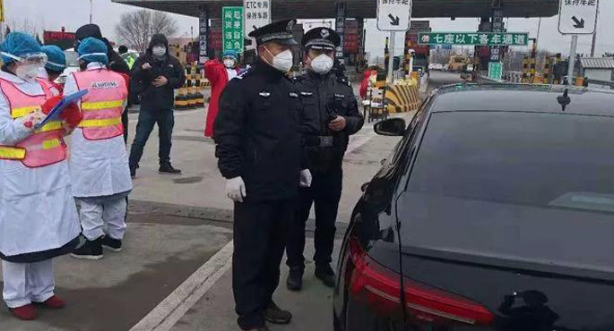 威海临港公安分局驻警高速入口,助力防控,严密监测,排查入威车辆及人员。