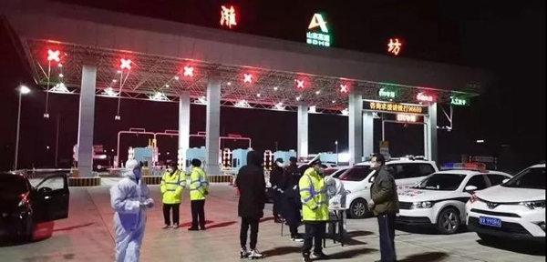 潍坊市公安局潍城分局禁毒大队民警参与青银高速潍城西口的查控工作。潍城9个街道(开发区、管理区)社区戒毒社区康复工作人员、禁毒社工和部分禁毒志愿者通过在社区张贴抗击疫情宣传单,协助村居物业开展进出入人员登记,开展居民楼、公共区域卫生消毒,协助开展排查走访等方式积极投入到抗击疫情的工作中。