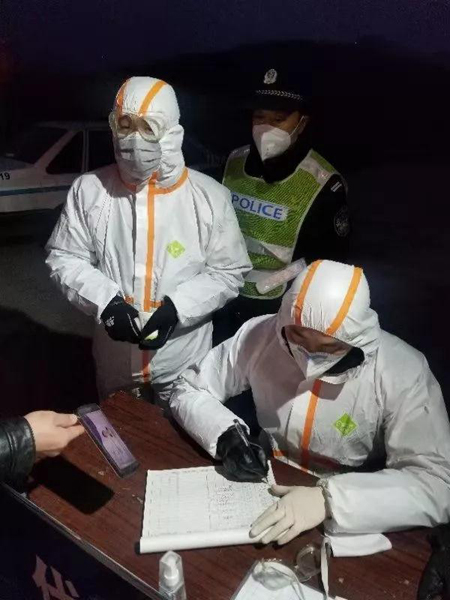 德州市公安局禁毒支队民警投入疫情防控一线,在高速路口和乡村社区摸底排查。