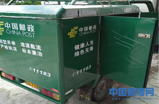 图为喷涂有禁毒宣传标语的快递车。中国禁毒网发