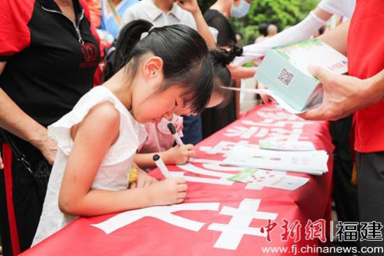中新网福建新闻7月18日电(许倩倩 任思怡 王晶)“我志愿成为一名光荣的禁毒防艾志愿者,我承诺:践行志愿服务精神,积极参加禁毒防艾公益活动,禁绝毒品,共防艾滋……”来自福建工程学院的志愿者庄严宣誓,立誓要为创建无毒零艾美丽家园贡献青春、智慧和力量。