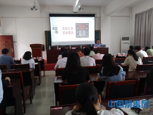 讲座上,县禁毒大队副大队长介绍了毒品的历史渊源、毒品的基本常识和抵制毒品的方法,并结合吸毒贩毒的具体案例,从毒情形势、毒品种类、毒品危害以及青少年如何拒毒、防毒等方面进行了专题讲座。同时,利用PPT直观展示了禁毒公益宣传图片,阐述了禁毒工作的重要性,把毒品的危害宣传给身边的每个人,做一个正能量的传播者。