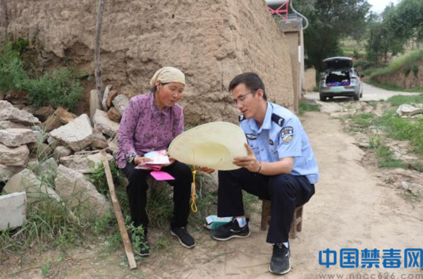 图为工作人员向群众讲解禁毒知识。中国禁毒网发