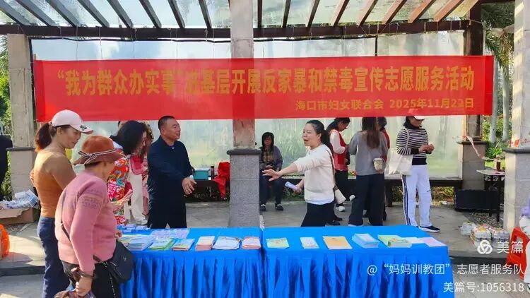 为深入贯彻法治建设精神,切实维护妇女儿童合法权益,11月22日上午,由海口市妇联、海口市妇女儿童工作委员会办公室主办的"11.25"国际消除家庭暴力日暨世界艾滋病防治日宣传咨询活动,在美兰区群上广场温情启幕。作为协办单位之一,省市妇联“妈妈训教团”志愿者服务队全程参与,与各单位携手为市民送上一场集禁毒普法、健康义诊、文艺表演、互动体验于一体的公益盛宴。
