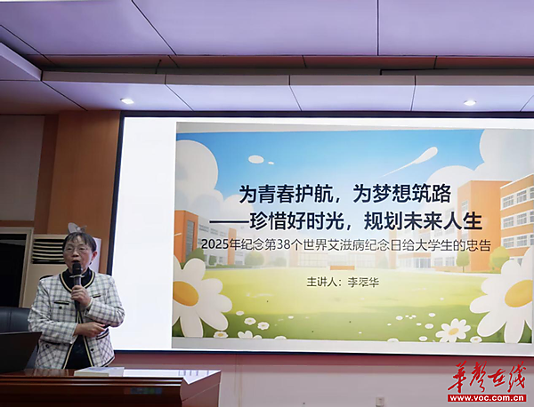 据悉,学校娄底市慈爱社会工作服务中心、娄底市青春健康教育基地今年是第六年联合校学生工作处在学校开展全校师生万人签名活动。自11月开始,娄底慈爱即开始培训预防艾滋病讲师志愿者,制作预防艾滋病宣传展牌,编印《预防艾滋病》宣传手册,编辑《青少年成长导报》,编排心理剧《难以言说的“艾”》,开展预防艾滋病PPT比赛,以确保预防艾滋病月系列活动顺利开展。下一步,学校将持续深化防艾宣传教育工作,在全校开展青春同伴教育,把健康安全教育融入日常教学与校园文化建设,通过更多样化的载体和更接地气的形式,让防艾理念扎根校园,引导广大青年学子以科学态度对待艾滋病,以责任担当守护自身健康,以温情善意关爱特殊群体,共同构筑无“艾”校园的坚实防线。