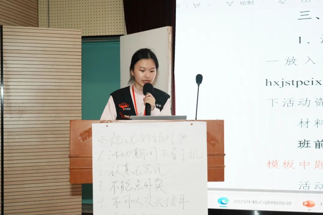 培训策划部部长张诗晗为大家介绍核心讲师团的开班要求与师资认证流程,强调开班流程的规范性,以此激发成员们的开班热情。