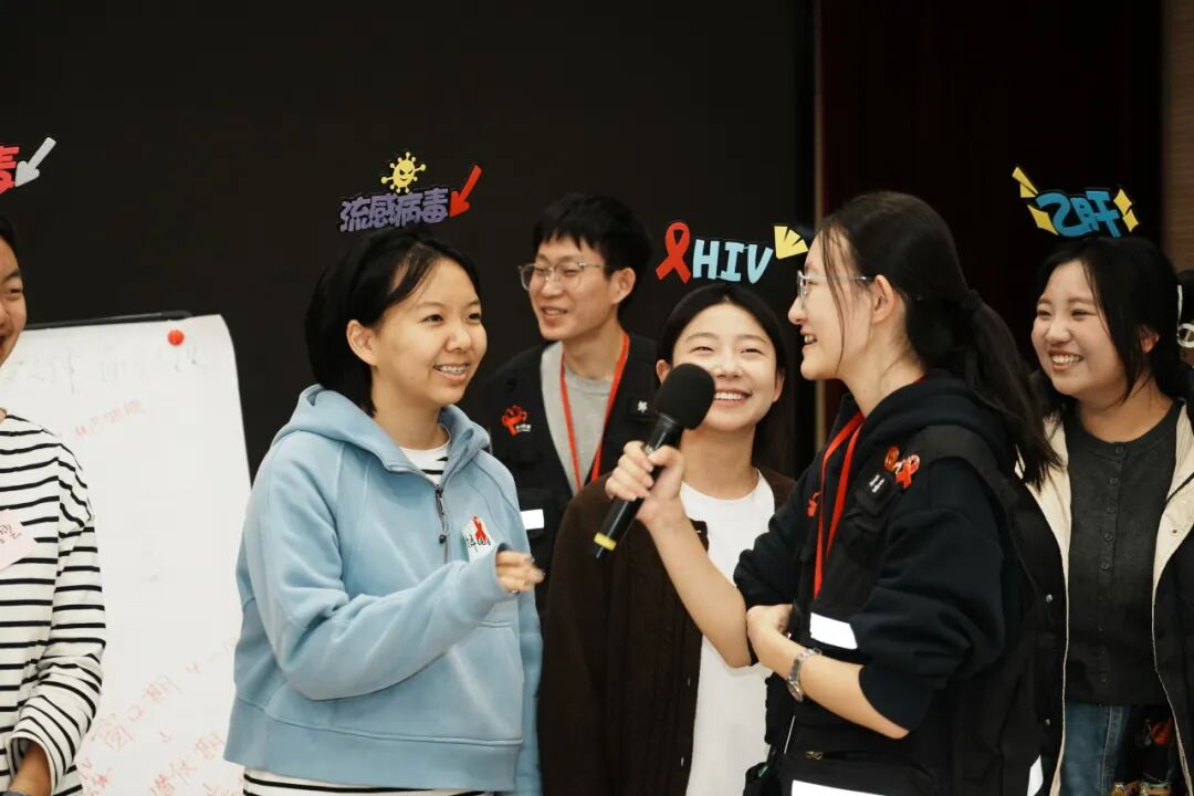讲师们围绕防艾核心知识点,精心为大家讲解了六道题目,从传播途径辨析到防护实操,从消除歧视理念到社会共治责任逐一展开。以通俗易懂的方式化解复杂概念,落实了同伴教育的意义,用真实案例强化认知记忆,将科学防艾知识与趣味互动形式巧妙融合,让枯燥的理论变得生动易懂。让大家了解到六道题背后核心逻辑的同时,还为后续开展基层防艾宣传积累了实用经验。现场氛围热烈,大家不仅专注记录关键要点,更主动参与案例讨论、情景模拟等互动环节,在交流中深化了防艾认知,凝聚了“共抗艾滋、共护健康”的共识。