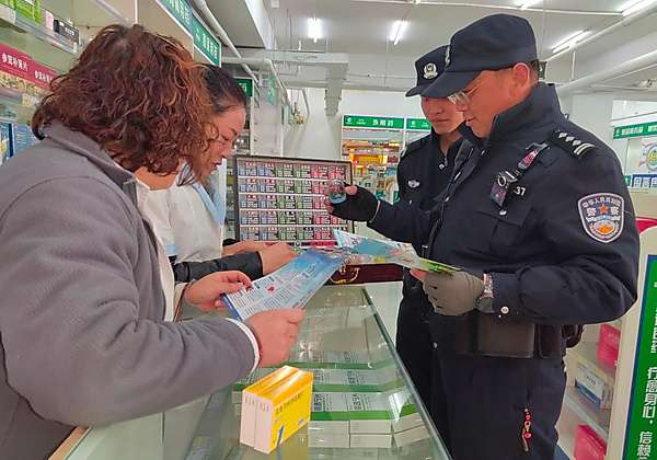 活动现场,王警官结合药店经营特点,重点向药店工作人员和购药群众讲解了常见毒品及易制毒化学品的种类、特征,以及识别毒品的方法。王警官着重强调,部分药品若被非法滥用,极有可能成为毒品替代品,危害身体健康和生命安全。
