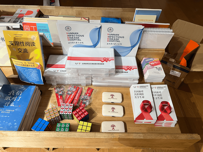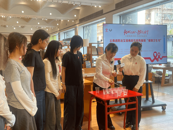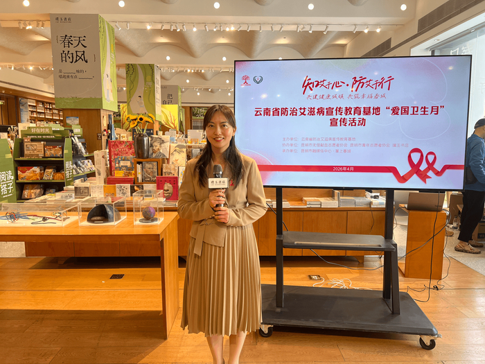 在第38个爱国卫生月之际,为深入贯彻“健康中国”战略,强化艾滋病防治宣传教育,云南省防治艾滋病宣传教育基地联合昆明市融媒体中心、昆明青年志愿者协会、昆明市无偿献血者协会及璞玉书店,于2026年4月24日在昆明市璞玉书店成功举办了“知艾于心,防艾于行——共建健康城镇,共筑幸福春城”主题宣传活动。此次活动吸引了青年学生、志愿者、媒体受众及市民等60余人线下参与,线上传播目标触达超8万人次,取得了良好的社会反响。